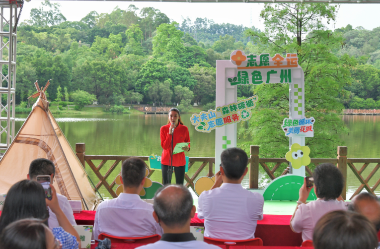6月21日上午,“志愿全运 绿色广州”广东省大夫山志愿服务主题公园“森林碳循”志愿服务活动在公园中岛广场亲水平台举行,正式启动大夫山“森林碳循——绿色循环 美丽花城”志愿服务项目。